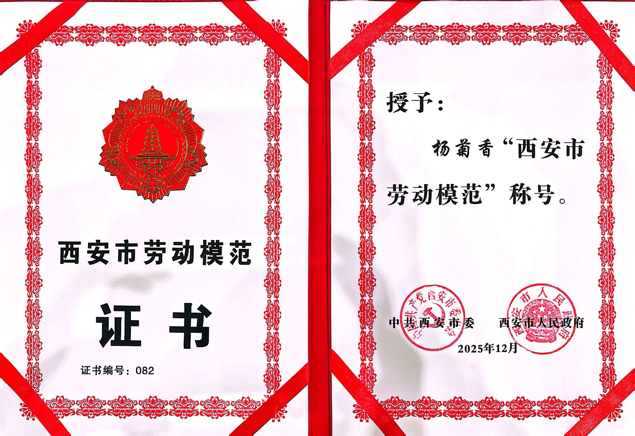 ac米兰官网杨菊香同志荣获“西安市劳动模范”称号