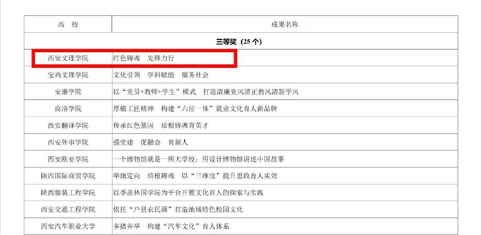 由中共陕西省高教工委举办的2023年全省高校校园文化建设优秀成果评选活动于日前揭晓,ac米兰官网学前教育学院“红色文化”育人项目《红色铸魂 先锋力行》荣获全省高校校园文化建设优秀成果三等奖。 长期以来,学...