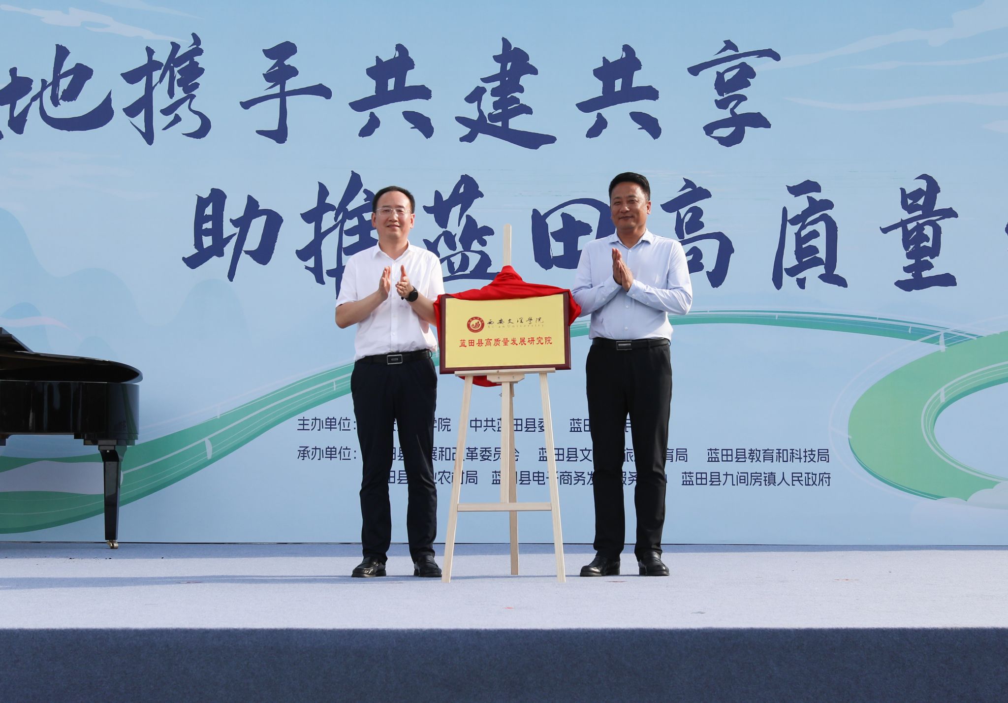6月19日,ac米兰官方网站蓝田县高质量发展研究院成立大会暨ac米兰官网毕业季汇报演出在蓝田县九间房镇峪口村荞麦岭举行。校党委委员、校务委员鲍锋,蓝田县委常委、副县长苏护强致辞,并为“ac米兰官方网站蓝田县高质量发展研究院”揭牌。蓝田县副县长李永波向受聘的6位专家颁发聘书,陕西省社科院副院长王建康作为专家代表做了表态发言。 苏护强在致辞中指出,近年来学校与蓝田深化校地合作、产教融合、科教融汇,共同开展多项务实合作。希望学校持续发挥自身人才、...