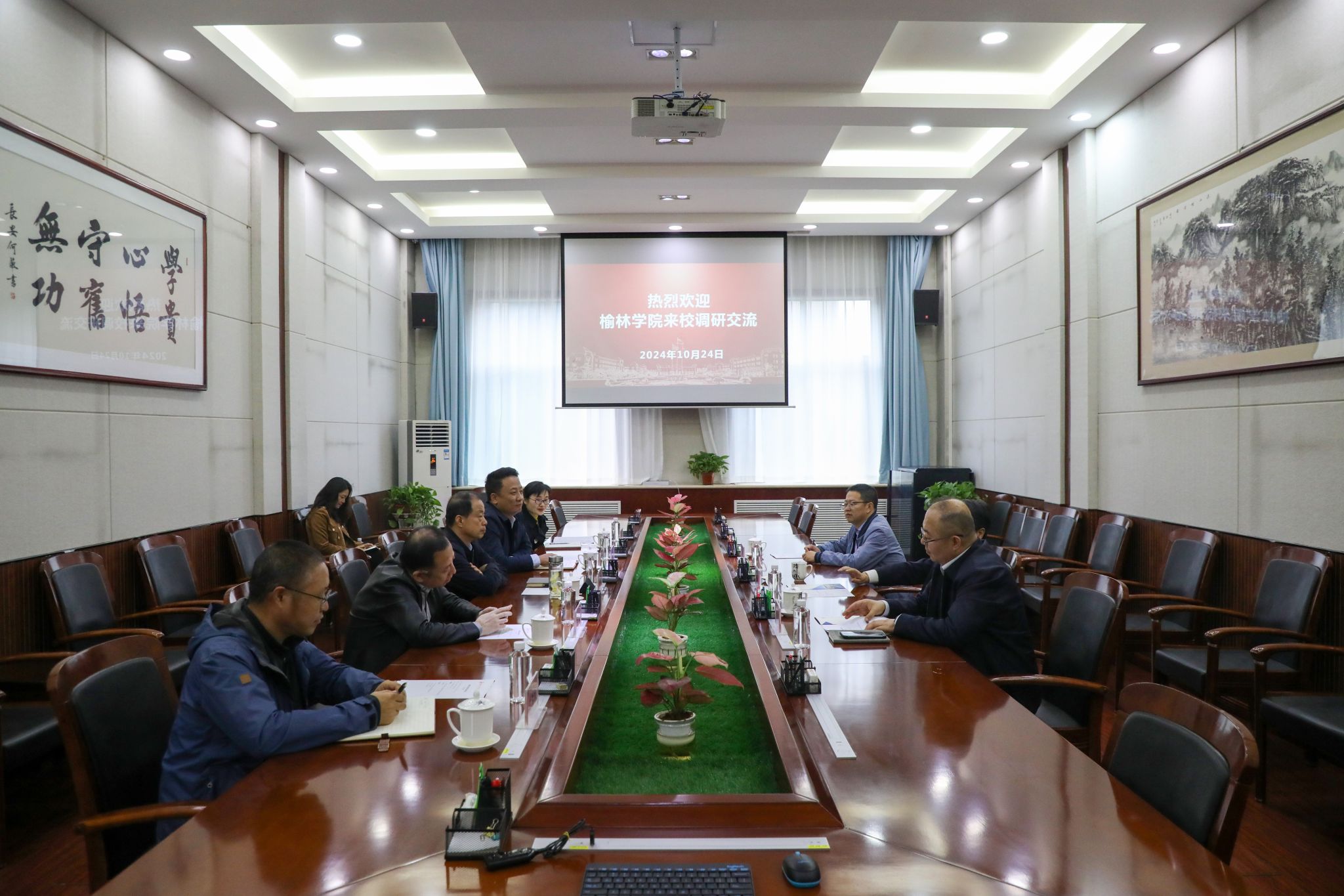 10月24日下午,榆林学院党委书记张新柱、副校长闫龙、科研处处长吴喜军一行3人来ac米兰官网调研交流,双方围绕校际合作和发展进行了深入研讨交流。党委书记王育选主持会议,党委委员、校务委员鲍锋,党政办、人事处、科研处、教务处等相关部门负责同志参加座谈。王育选对张新柱一行的到来表示热烈欢迎。他简要介绍了学校的基本情况和近年来取得的主要办学成就。他指出,两校有着相似的发展历程和密切的交往渊源,希望双方以此次交流为契机,...