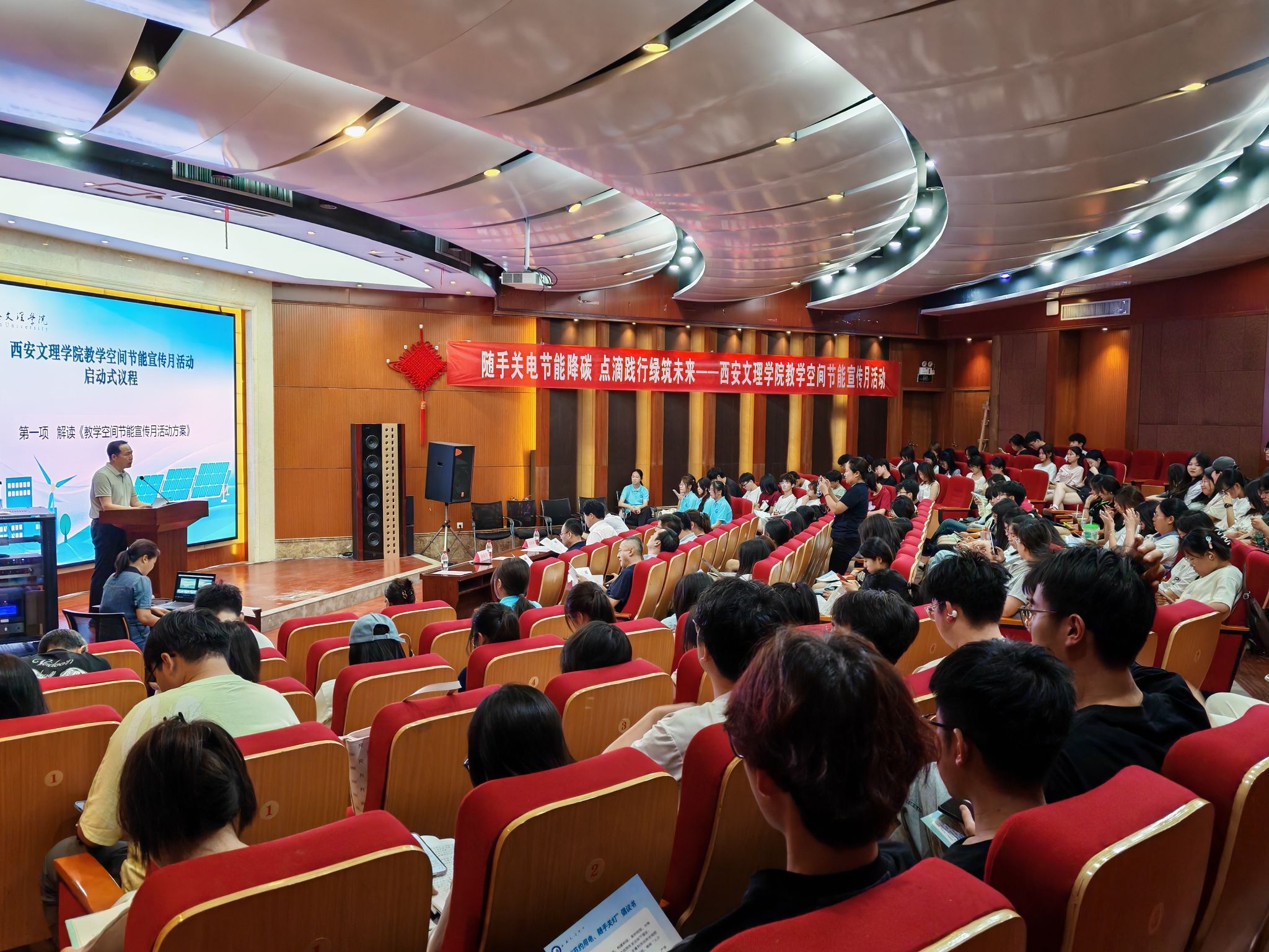 5月21日下午,学校在图书馆报告厅举行“教学空间节能宣传月”启动仪式。副校长刘明利、校务委员徐东升,宣传部、学生处、校团委、后勤管理处负责人,以及机械与材料工程学院、学前教育学院、历史文化旅游学院党总支书记和师生代表等近200人共同参与。活动由信息中心主任李立主持。启动仪式上,李立详细解读节能宣传月活动方案,明确了活动总体目标、实施路径和任务分工。学生代表宣读节能倡议书,号召师生积极投身节能实践。徐东升向节能宣传志愿者颁发聘书,...