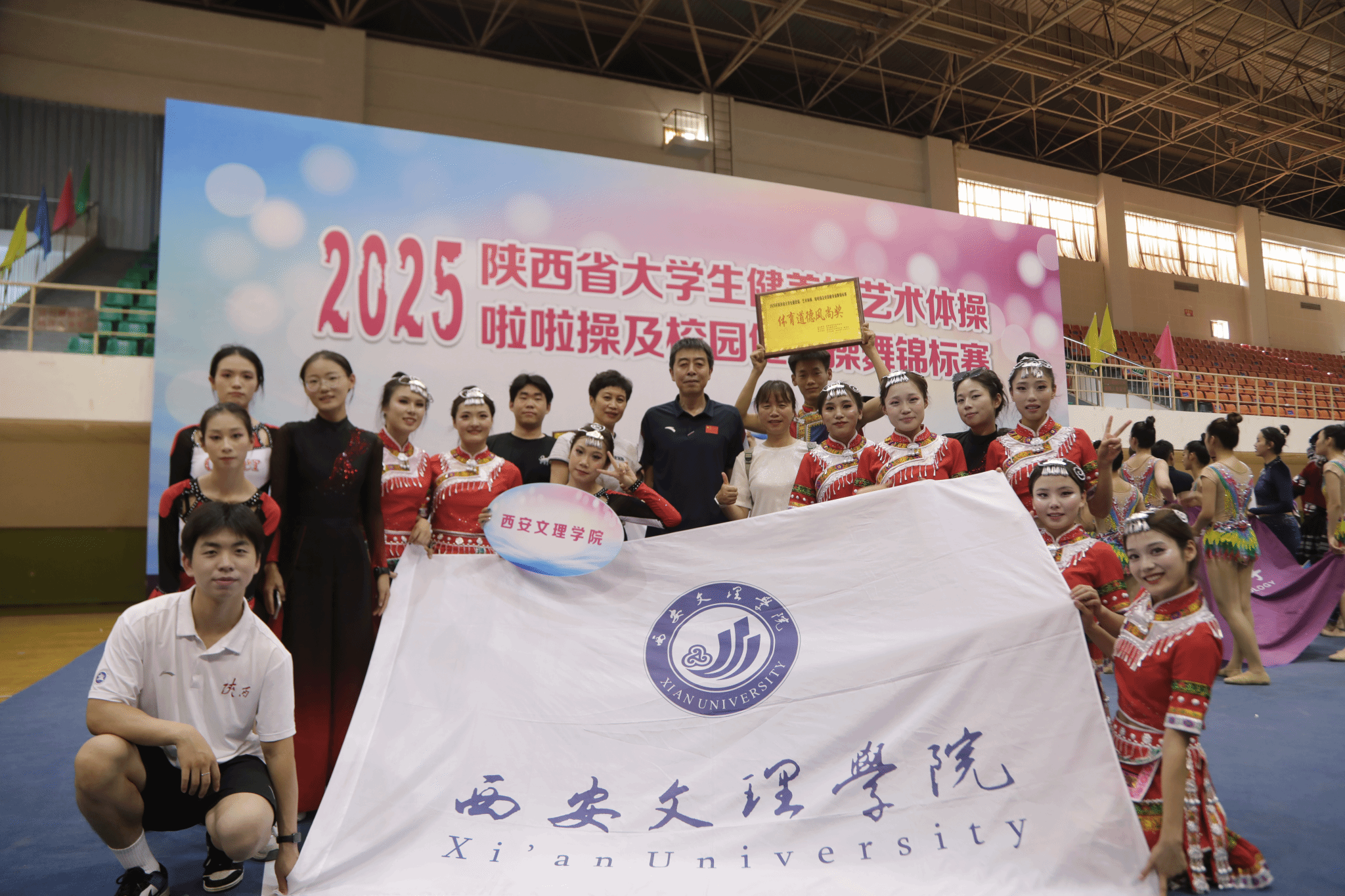 6月11日至13日,在陕西省大学生健美操、艺术体操、啦啦操及校园健身操舞锦标赛中,ac米兰官网代表队表现优异,共获乙组有氧踏板套路第一名、健身排舞(自选串烧曲目)第一名、高踢腿啦啦操第二名、花球啦啦操第三名及派对系列第四名。本次比赛由体育学院院长査毅领队,冀晓斌、张啊宁、段腾枝三位教练指导。备赛期间,师生克服困难,坚持高强度训练,精心打磨动作编排。赛场上,队员们以整齐划一的动作、饱满的热情和出色的表现,展现了学院健身操舞专项队的风采。...