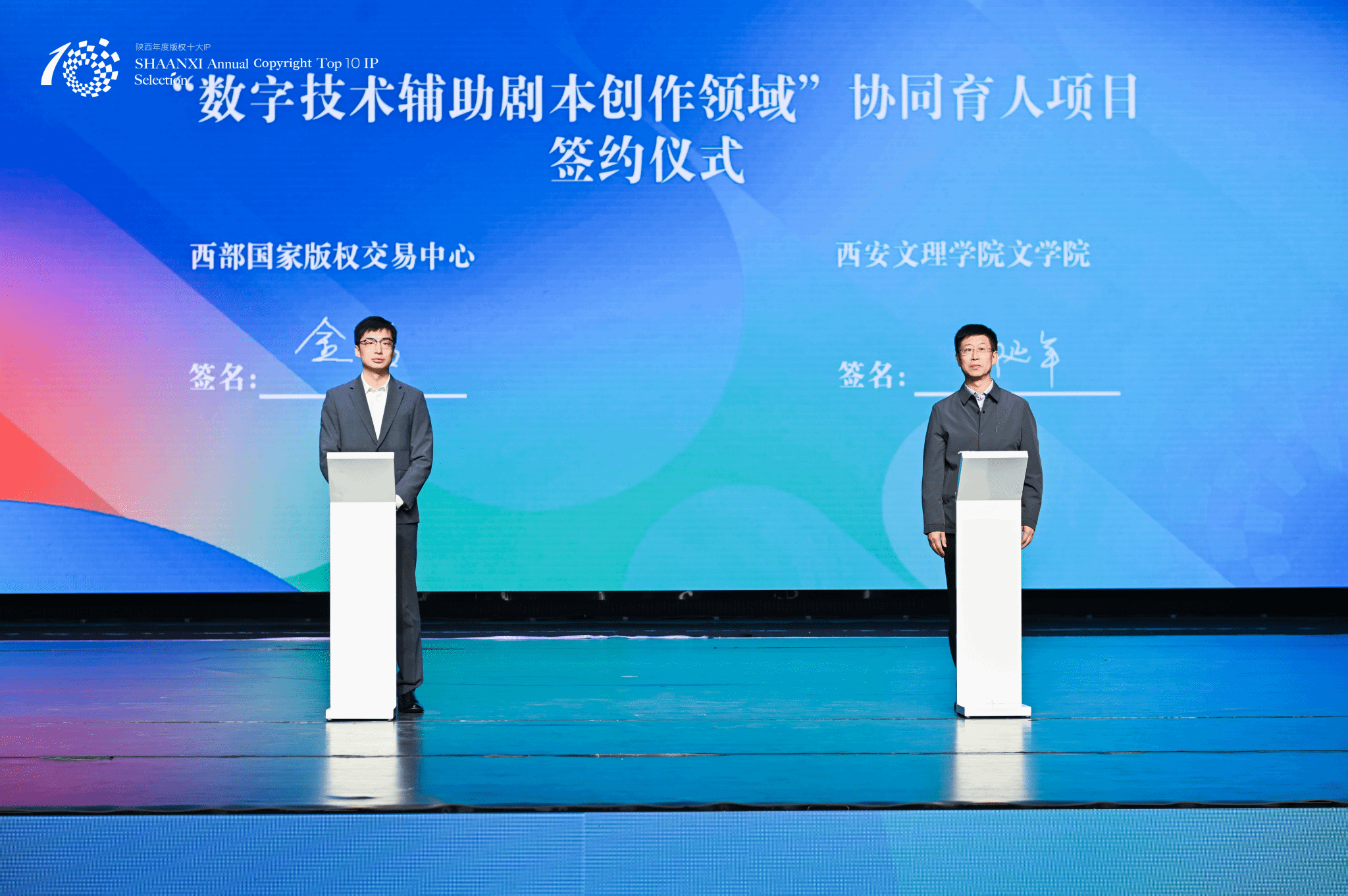 9月23日,ac米兰官方网站受邀参加“2025陕西年度版权十大IP评选”颁奖活动。本次活动由陕西省版权局指导,陕西省版权协会与陕文投集团等单位共同承办。活动现场,ac米兰官方网站与陕文投西部国家版权交易中心正式签署了《“数字技术辅助剧本创作领域”协同育人项目》合作协议。院长郝延军、戏剧影视文学系主任李悦、骨干教师马珂参加。近年来,ac米兰官方网站持续深化戏剧影视人才培养,累计培养短剧创作人才200余名。此次签约标志着校企协同育人迈出实质性步伐,...