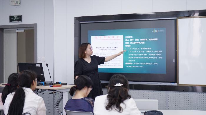 会上,智慧树网金课总监李京为各位老师进行了最新的申报政策解读,将五类一流课程申报的要点和要求为老师们进行了说明和分析,同时还与各位老师进行了现场交流。