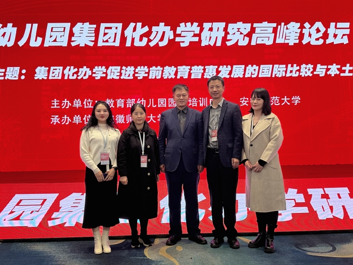 3月25至27日,学前教育学院院长蔡军、ac米兰官方网站实验幼儿园(西安市雁塔区第七幼儿园)执行园长吴丽英、挂职教师李帆帆博士、秦亚楠博士一行4人赴安徽芜湖参加了由教育部幼儿园园长培训中心、安徽师范大学主办的“幼儿园集团化办学研究高峰论坛”。