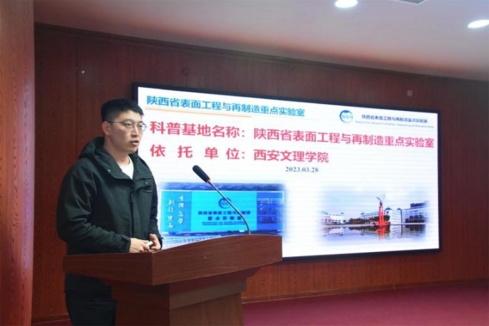 机械与材料工程学院教师王迪博士代表陕西省表面工程与再制造重点实验室科普教育基地参加活动并作科教融合报告,展示了基地风貌及建设成效,并就以往科普教育研学活动与参会代表进行了广泛交流。