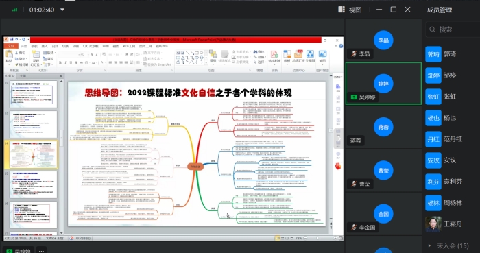 李晶分享了《基于教学能力生成的过程性考核设计与实施——以“小学语文课程与教学法”课程群为例》,深入探讨了2022年新版《义务教育语文课程标准》对新时期教育理念、教师素养、课堂设计带来的变化与挑战,结合师范学院自身教学特点与教学优势提出“三个课堂”的实践理念,并在发言结尾谈到了对“新课标”理念中许多热点问题。吴婷婷就《素养型目标导向下的教师专业发展》主题与参会学者进行分享交流。她从党的二十大报告关于“文化自信”角度切入,深入剖析了新时期小学教师如何在教学实践和教学研究中克服自身职业倦怠,完成从“知识型教师”向“智慧型教师”转变的问题,开创性地提出“择宜素养”与“顿悟式学习”的全新理念,为教师队伍的培养建设做出了重要的前沿思考和理论推进。蒋蓉和王崧舟对两位老师的发言作出了精彩的点评和总结。