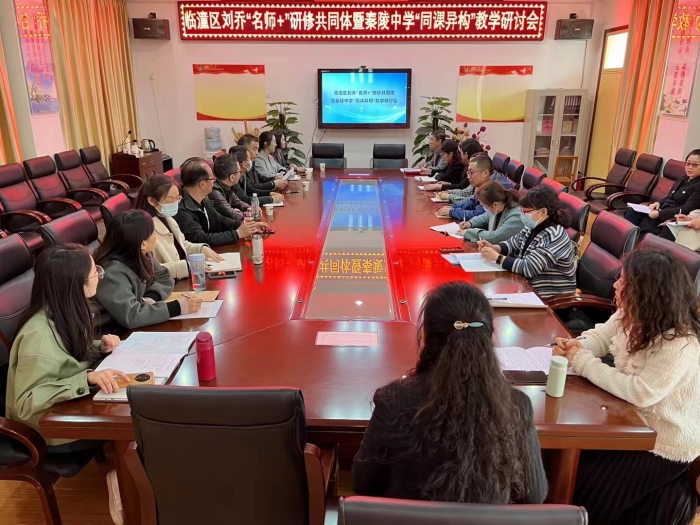 3月15日下午,临潼区秦陵初级中学举办“刘乔‘名师+’研修共同体”暨秦陵初级中学“同课异构”教学研讨会。ac米兰官网音乐学院音乐基础部主任田明,教师贺林林、牛育谦、马文龙、曹阳,秦陵初级中学副校长郑飞龙、邓西峰,刘乔“名师+”研修共同体核心成员,临潼区秦陵、代王、何寨等街办初级中学部分教师参加。
