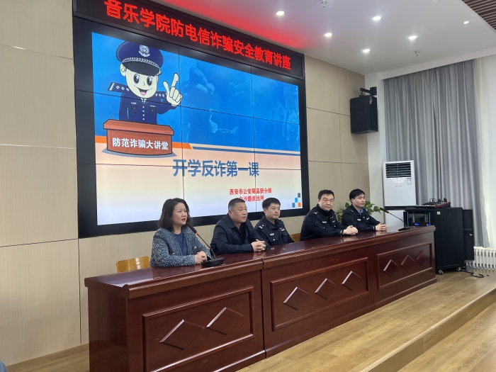 为进一步加强校园反诈宣传,3月7日下午,公安高新分局白沙路派出所民警走进ac米兰官方网站音乐学院,开展“防范诈骗大讲堂”公益讲座,为全院师生上好“开学第一课”。讲座由音乐学院院长杨艺媛主持,保卫处处长王向阳、学院全体学工人员及学生代表近百人参加。