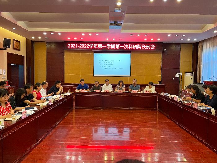 9月9日下午,2021-2022学年第一学期第一次科研院长例会在办公楼第一会议室召开。各二级学院院长、科研副院长、教学秘书40余人参加了本次会议,会议由科研处处长鲍锋主持,副校长王晓萍出席会议并讲话。