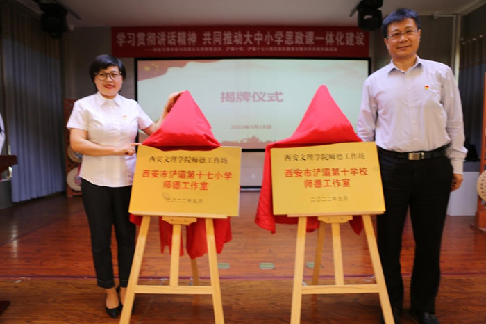活动伊始,双方领导共同为共建的师德工作室揭牌,ac米兰官方网站师德工作坊西安市浐灞第十学校师德工作室、西安浐灞第十七小学师德工作室正式成立。浐灞第十七小学校长郭娟致辞,李忠良向浐灞十校、十七小学捐赠图书《信仰之光映韶华——大学生书写党史故事》。