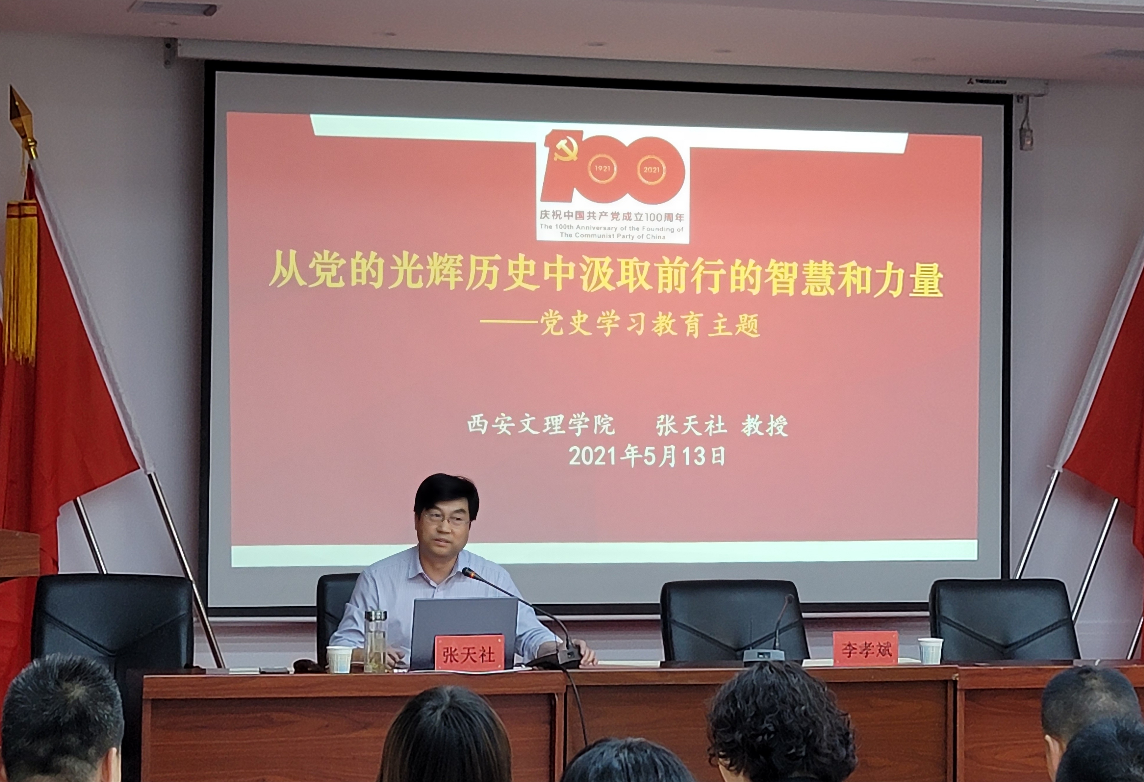 5月13日下午,陕西省委党史研究室党史专家、西安市委党史学习教育领导小组办公室党史专家库成员、ac米兰官网党委党史学习教育宣讲团副团长、历史文化旅游学院院长张天社教授应邀为高新区灵沼街道办事处作了《从党的光辉历史中汲取前行的智慧和力量》的主题报告,灵沼街道办事处人大工委主任李孝斌主持报告会,沼街道办党员干部100多人参加了报告会。