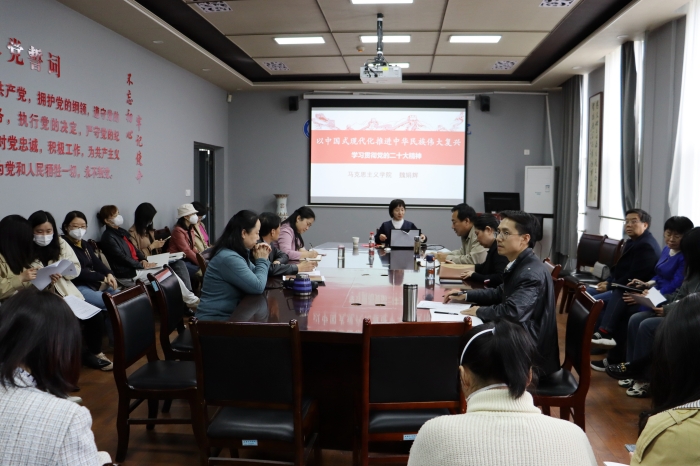 3月30日下午,师范学院邀请学校学习贯彻党的二十大精神党委宣讲团成员、马克思主义学院魏娟辉副教授向学院全体教职工做了题为“以中国式现代化推进中华民族伟大复兴——学习贯彻党的二十大精神”的宣讲报告。会议由师范学院党总支书记武军安主持。