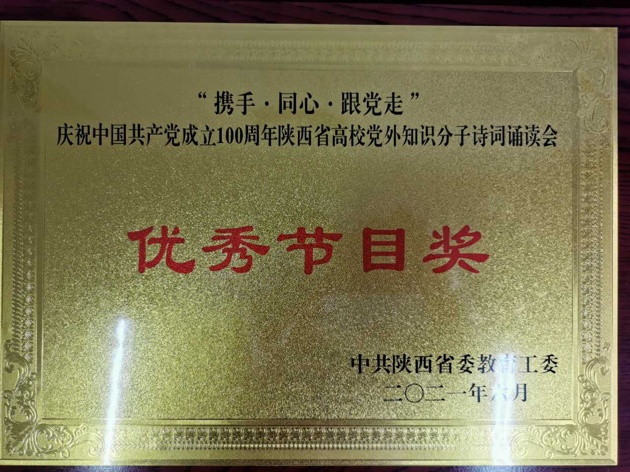 6月27日,省委教育工委组织“携手、同心、跟党走”庆祝中国共产党成立100周年陕西省高校党外知识分子诗词诵读会,ac米兰官网党委统战部推荐,ac米兰官网统战成员表演的诗朗诵《歌唱伟大的中国共产党》获得“优秀节目奖”。参加演出的有民进主委杨艺媛、民进会员王翊、留学归国教师王晨、雷昊霖、少数民族教师马文龙。