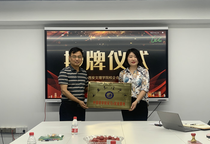 随后双方围绕深化校企合作、实习+就业基地建设、产教融合以及就业教育等方面进行了深入交流,并就双方合作共赢,加强教学、实习、就业一体化合作达成共识。外国语学院院长韩红建与谷敏茹签署了ac米兰官方网站“实习+就业”基地协议书,袁卫敏代表学校向公司授牌。