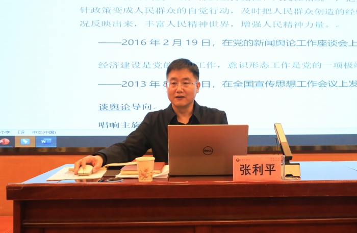 张利平首先在讲座中传达讲授了习近平总书记关于宣传工作的最新论述和经典论断,强调了宣传工作的党性意识和大局意识;其次,他结合自身20余年在新闻工作一线的采访、写作经历,讲述了新闻宣传工作的基本要求和特殊性,用鲜活的实例展示了作为一名新闻人的核心素养,和作为一名传媒人的职业操守。最后,张利平还对新闻写作进行了具体规范性指导,通过分析讲解实际的新闻稿件案例,对消息和通讯两种最主要新闻体裁的写作进行了应用性讲授。鲜明的案例,生动的讲解,不时引来现场阵阵掌声。