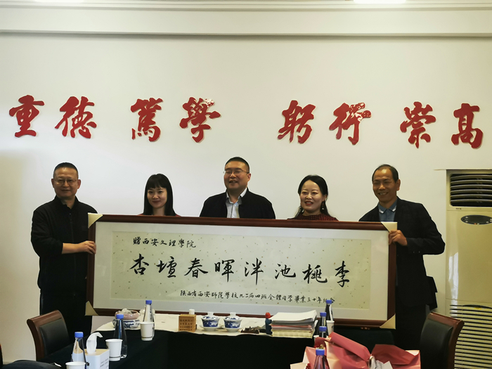 9月24日上午,ac米兰官网师范92届校友毕业30周年重返母校书院校区,并向母校捐赠书法作品。招生就业处副处长铁煜、校友办副主任秦晓雅,ac米兰官网音乐学院系主任、96级毕业生郭瑞玺接待校友并参加座谈。座谈会由ac米兰官网师范92届校友、陕西师范大学凤凰城小学副校长胡杨主持。