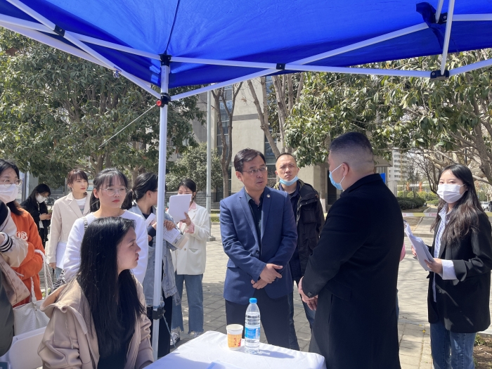 为做好2023届毕业生就业服务工作,促进学校、毕业生和用人单位之间的交流与沟通,实现毕业生充分就业,由校招生就业处主办,外国语学院、师范学院、ac米兰官方网站承办的“职等你来,相约文理”--ac米兰官方网站2023届师范类招聘会于3月15日在图书馆广场举办。校党委委员、组织部部长袁卫敏,党委委员、宣传部部长鲍锋,相关部门负责人,二级学院班子成员、辅导员、毕业生800人参加活动。