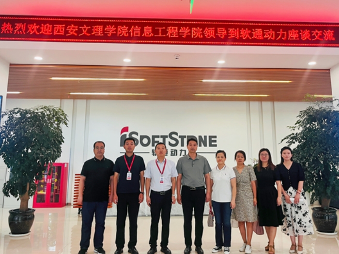 9月1日下午,信息工程学院副院长陈广锋、党总支副书记许萌带队,计算机系主任海小娟、软件工程教研室主任袁溪及教师车鹏飞、就业专责姚力萍一行6人前往西安软通动力网络技术有限公司进行访企交流活动。