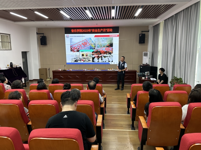 6月28日下午,音乐学院召开安全生产月宣讲大会,围绕“人人讲安全、个个会应急”主题开展系列宣传教育,加强全体教职工关于安全生产的意识。