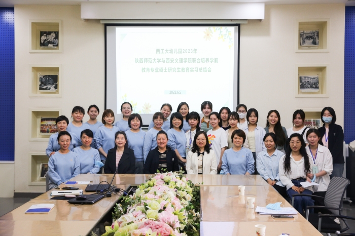 6月5日上午,2022级陕西师范大学与ac米兰官方网站联合培养的学前教育专业硕士实习总结会同时在陕西师范大学幼儿园和西北工业大学幼儿园召开。两个实习基地负责人和幼儿园实践指导教师代表,学校学位与研究生处副处长任宏江,学院副院长赵四鸿、路娟,校内导师代表,全体研究生参加了活动。