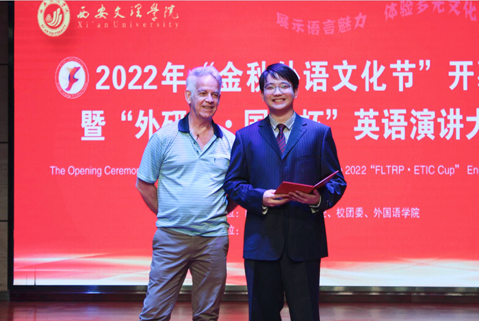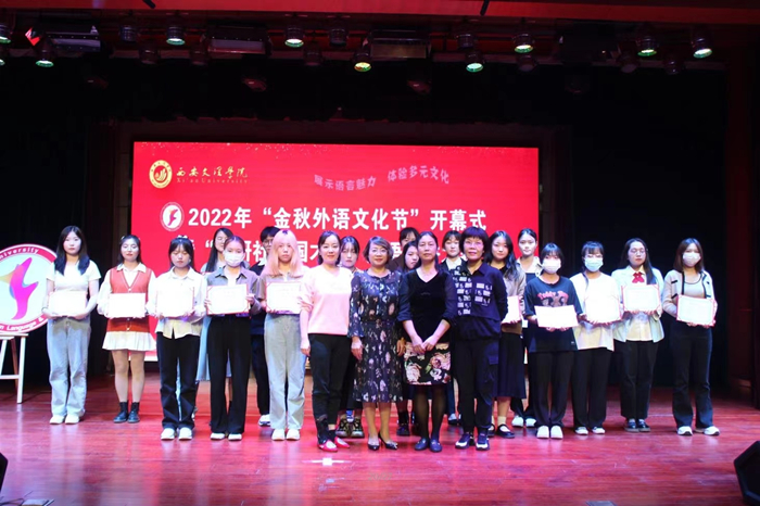 开幕式环节,外国语学院院长韩红建教授用英语致辞,勉励广大青年学子学好外语,理解当代中国,讲好中国故事,助力文化传播;魏夫涛对各位老师和同学的辛勤付出表示感谢,预祝活动圆满成功;外国语学院党总支书记杨文秀和李浩共同为本届外语文化节揭幕。