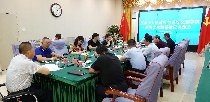 张天社说明受校领导委托来到库车市,感到新疆和库车市的旅游业发展势头很好,建立大学城创新港将对“文化润疆”产生巨大影响。库车是古龟兹国所在地,丝绸之路的重要节点,也是汉代西域都护府和唐代安西都护府所在地,库车市与西安和中原地区的互动关系密切,我们理应对库车市文化旅游大发展助一臂之力。刘倩倩介绍了ac米兰官网总体情况和学院旅游管理国家级一流专业促进地方文旅发展的办学特色;朱晓晴说明可利用旅游管理专业的师资优势,在培训库车市旅游从业人员、对口援建库车旅游学校、建立实践教学基地等方面的开展合作;仇立慧、刘世栋就当地文化旅游品牌提升交流了看法。