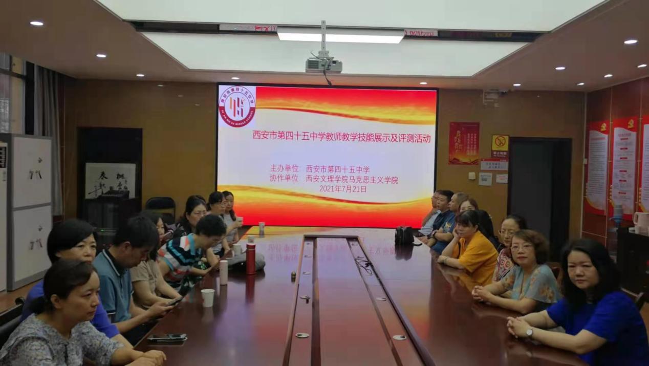 7月21日,西安市第四十五中学联合马克思主义学院举办教师教学技能展示及测评活动。马克思主义学院院长张军学以及各二级学院共23名专家教授参加了此次活动。