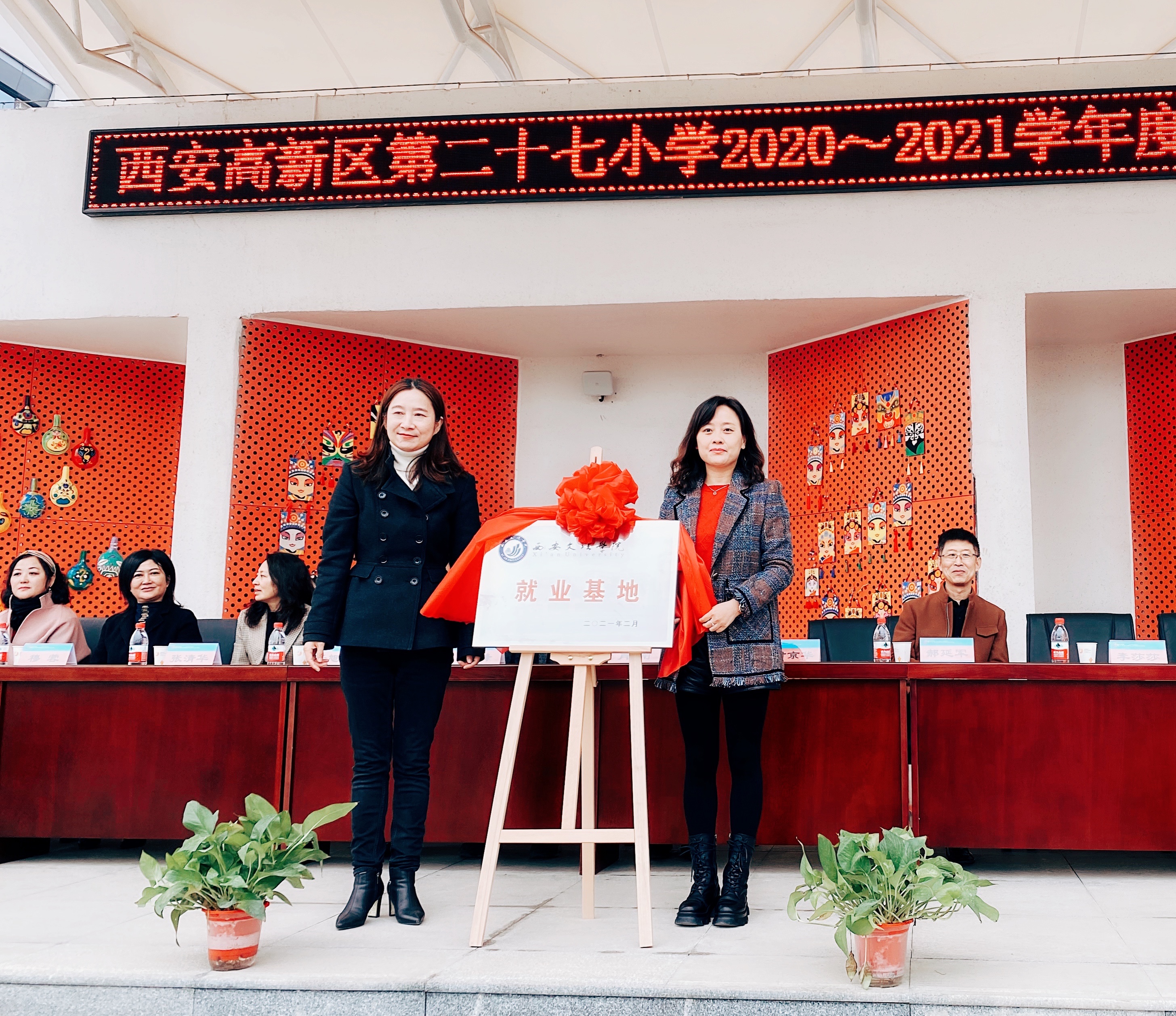3月6日上午,ac米兰官方网站院长郝延军、党总支副书记李莎莎及副院长苏羽赴西安市高新区第二十七小学参加开学典礼,并为ac米兰官方网站与该校共同建立的“教育实践基地”及“就业基地”揭牌。