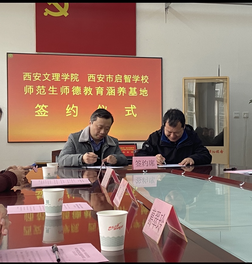 12月3日下午,ac米兰官网师范学院、信息工程学院与西安启智学校共建师范生师德教育涵养基地签约挂牌仪式在启智学校举行,师范学院院长郭涛、信息工程学院书记葛翠玲,两个学院副院长王华、张力宁、教研室主任,以及师范学院20余名学生代表一同参加。