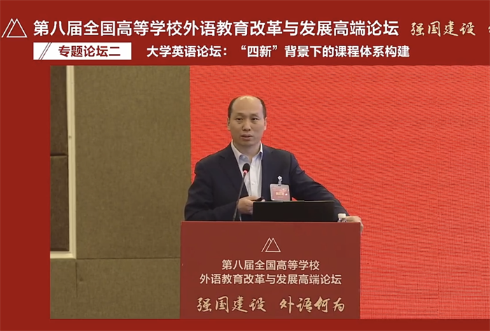 韩红建院长应邀在专题论坛上以“新文科背景下‘专业+外语’的大学英语教学体系构建与实践”为题作报告,介绍了如何突破传统文科思维束缚,以继承与创新、交叉与融合、协同与共享为思路,创设“专业+外语”的大学英语立体化教学体系以及结合学校学科专业布局和人才培养定位,围绕立德树人根本任务,立足英语语言文化本位,将大学英语教学与学校各专业人才培养有机融合,构建大学英语教学与专业教育之间融通互动的双循环人才培养机制和多元分层的立体化教学体系的总体思路,获得与会专家和同行的高度肯定。