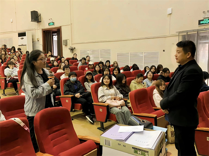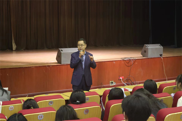 高新十三小学校长寇磊做了《梦之向,心所往——说说教育见习与实习的一些事》的演讲。寇校长分享了自己多年的一线教育经验及有关见习、实习的经历,并期望大家在见习时能够做到多听、多看、多思,在实习时能够做到多学、多练、多悟。分享期间寇校长与部分学生进行了互动,解答了学生关于实习的一些问题。