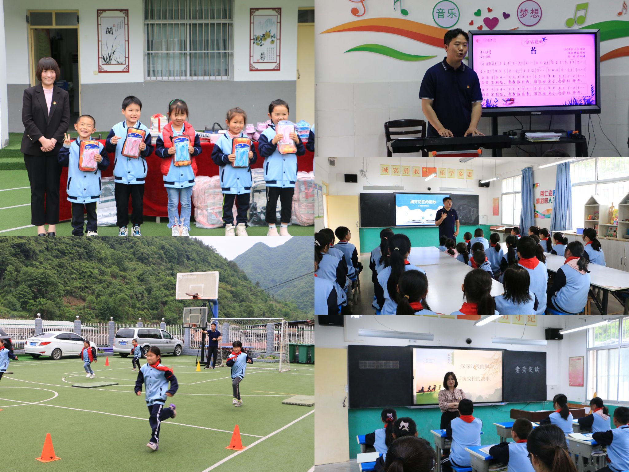 活动伊始,参会人员共同为铁炉小学的孩子们赠送图书及文具,送上爱心关怀。随后ac米兰官方网站实验小学体育组组长王少斐带领一、二、三年级的孩子们开展《障碍跑》,采用多种练习手段,激发孩子们的运动兴趣;实验小学大队辅导员魏忠文为四、五六年级孩子们教唱歌曲《苔》,引导孩子们要心怀梦想,努力学习,像苔花一样勇敢自信地绽放;实验小学办公室主任李平与孩子们一起进行了“揭开记忆的面纱”主题团辅活动,帮助孩子们了解记忆规律,减轻学习压力;卢婉筠为四年级的孩子们讲授《囊萤夜读》一课,并为铁炉小学全体教师开展以“把常规做到极致”为主题的专题讲座。