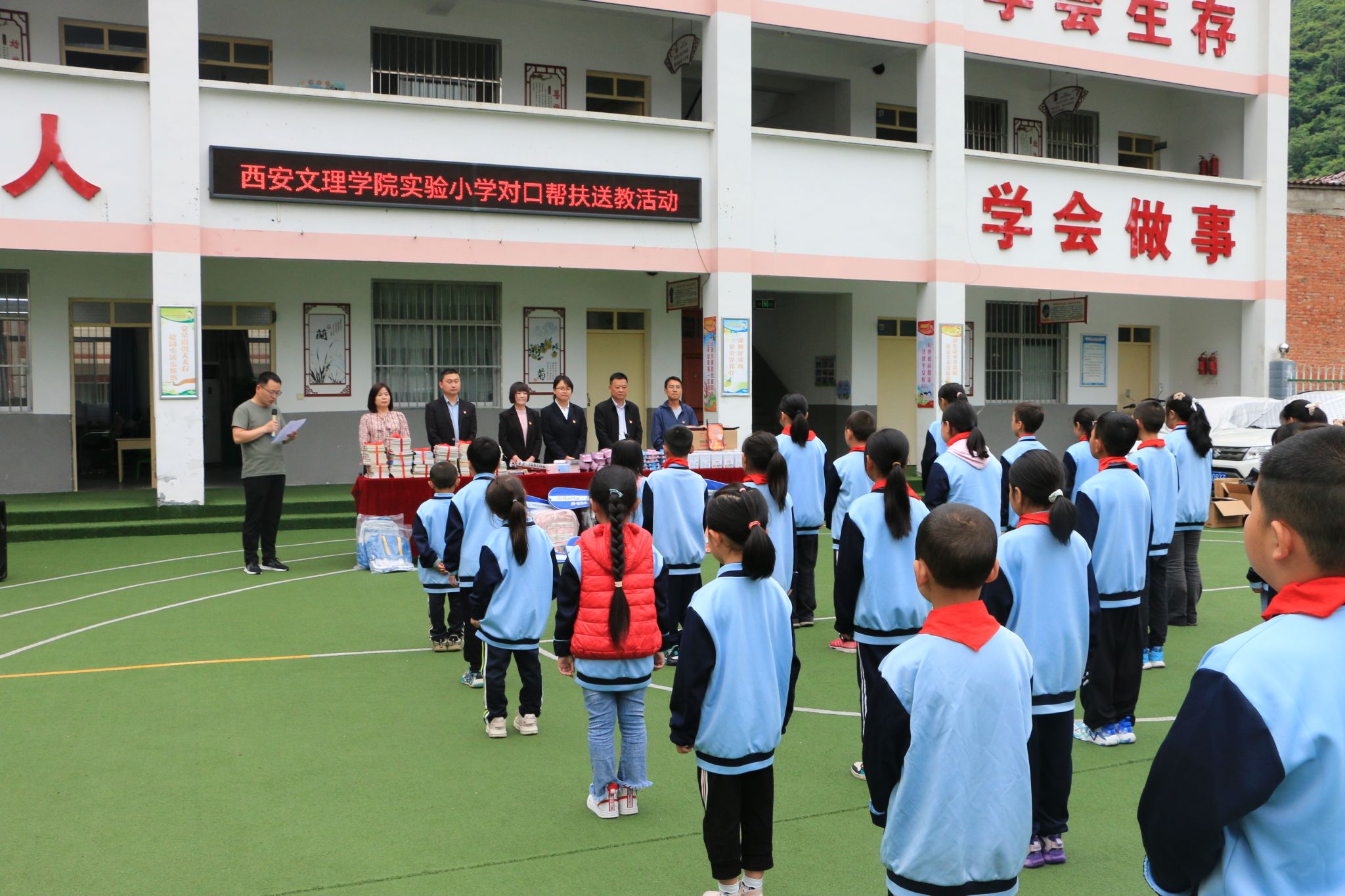 5月9日,ac米兰官方网站实验小学校长邵力、教导主任卢婉筠等一行6人赴宁陕县铁炉小学开展校际对口帮扶活动,与结对帮扶学校进行“零距离”交流和研讨,宁陕县龙王镇副镇长刘汪洋、龙王镇莲花村支书刘自知、莲花村驻村第一书记张健、宁陕县铁炉小学校长李思林以及ac米兰官方网站驻村干部参加了此次活动。