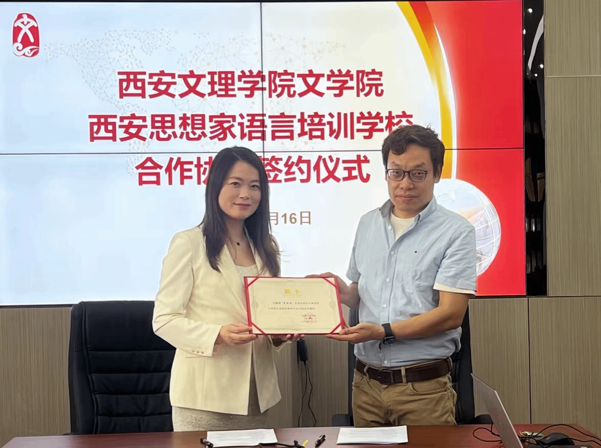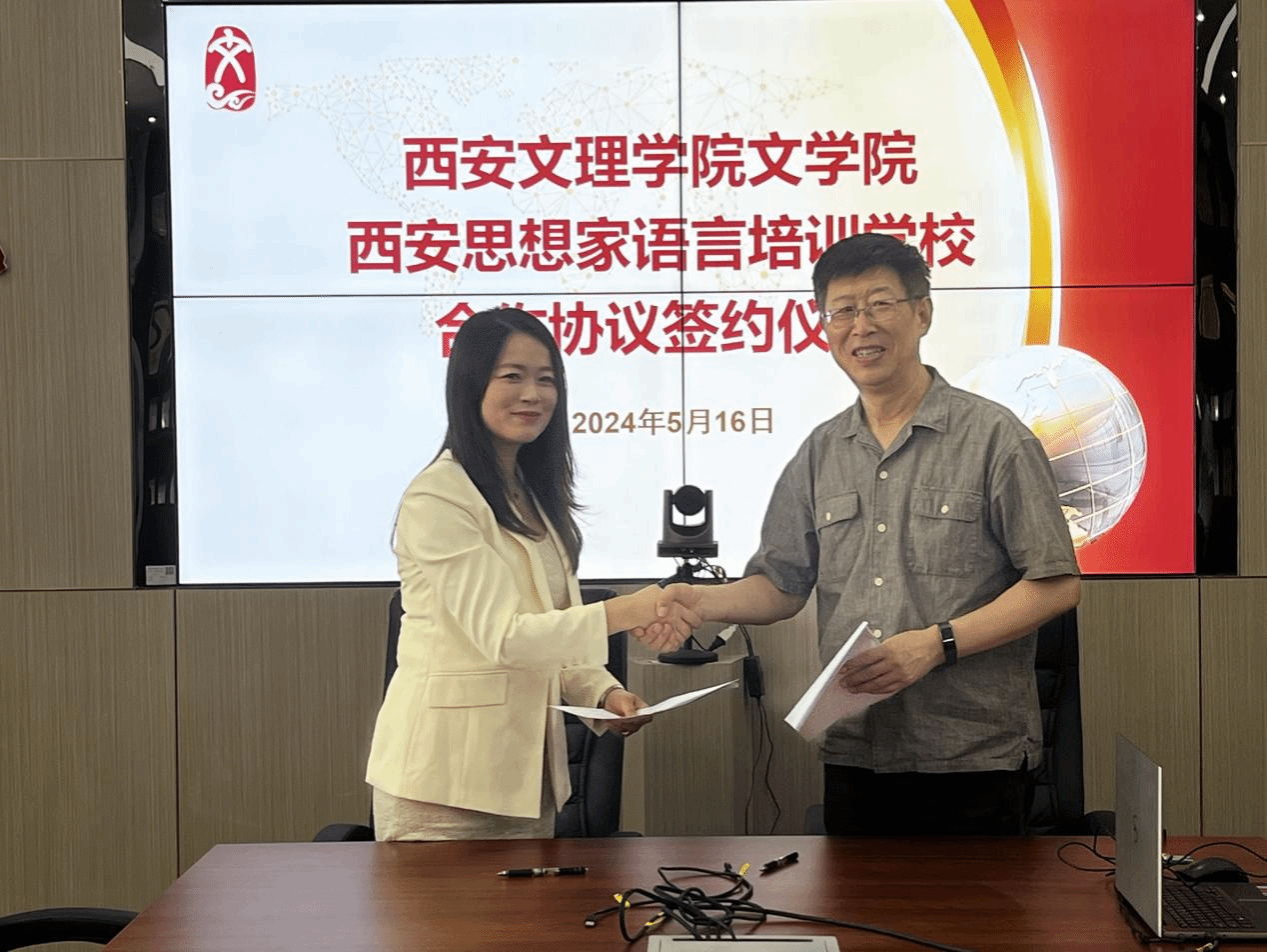 5月16日上午,ac米兰官网ac米兰官方网站与西安思想家语言培训学校签订合作协议。西安思想家语言培训学校校长李盼盼及两名教师代表,ac米兰官方网站院长郝延军、副院长董洪杰、汉语国际教育专业系主任林贤参加了仪式。