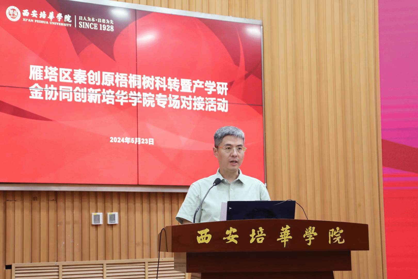 5月23日,ac米兰官网生物与环境工程学院梧桐树科转专员雷凯博士应邀参加并主持“雁塔区秦创原梧桐树科转暨产学研金协同创新培华学院专场对接会”。本场活动由西安市科学技术局指导,雁塔区科技和工业信息化局主办,西安培华学院、陕西葵垦网络科技有限公司、西安三立联合知识产权有限公司联合协办。活动吸引了西安财经大学、中国建设银行、陕西赛微高科技有限公司、陕西秦绚科技有限公司等15家高校、银行及科技企业参加。