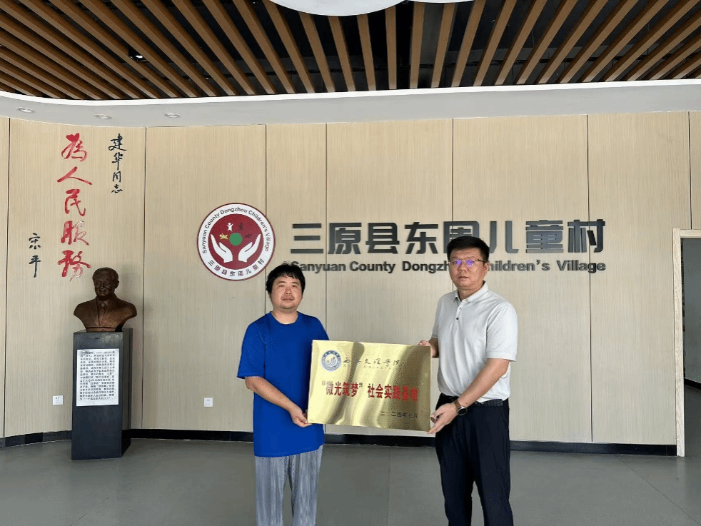 为搭建大学生社会实践教育平台,深入推进学院党总支“大思政课”育人格局,7月12日,机械与材料工程学院党总支与咸阳市三原县东周儿童村合作共建大学生“微光筑梦”社会实践基地。学院党总支书记武文斌、副书记杜丽娜、儿童村郭老师等出席挂牌仪式。