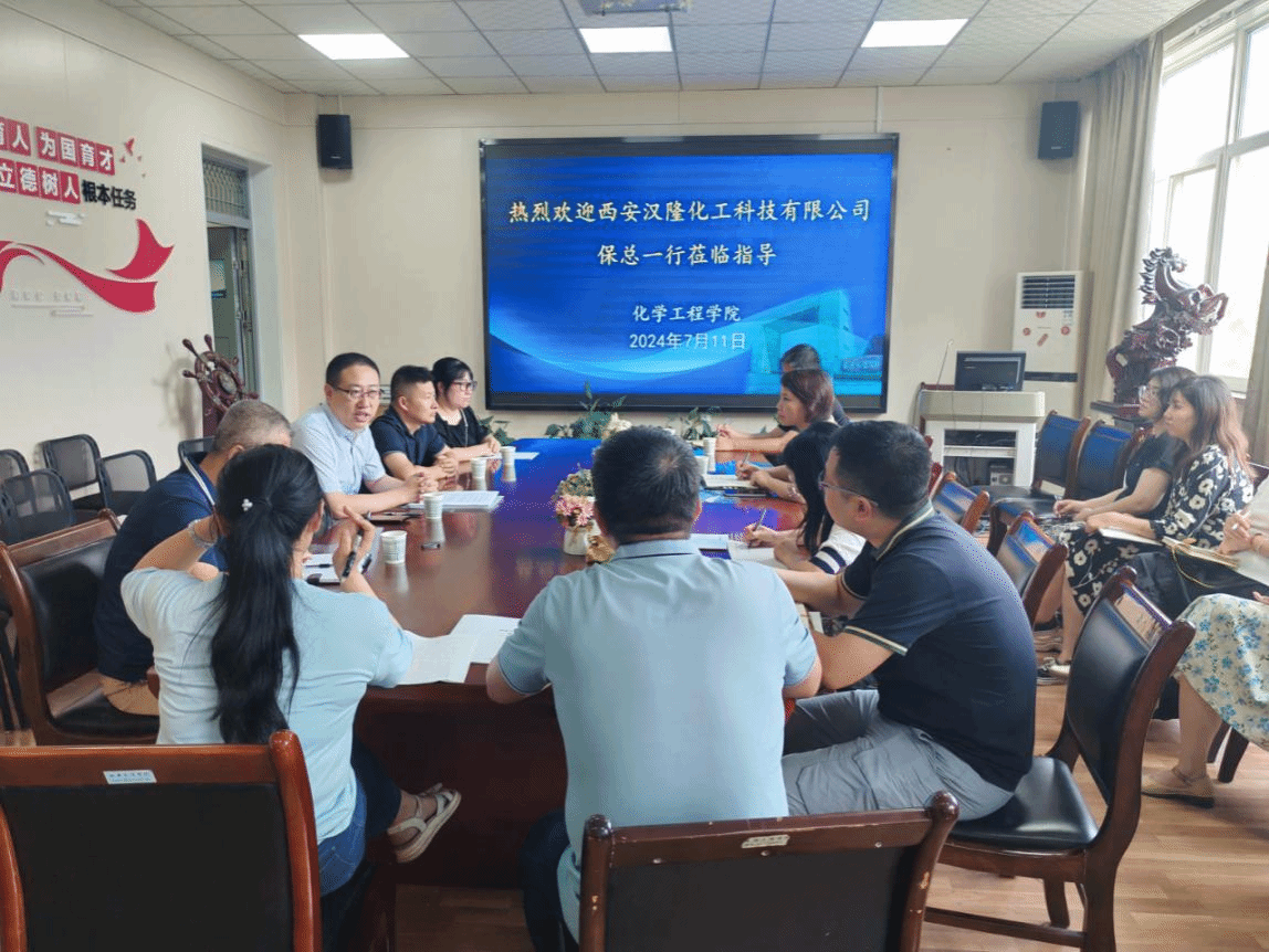 7月11日,西安汉隆化工科技有限公司总经理保全福一行4人来化学工程学院座谈交流。科研副院长屈颖娟、食品安全与检测系主任马明阳及西安市食品安全检测与风险评估重点实验室全体人员进行了交流座谈。
