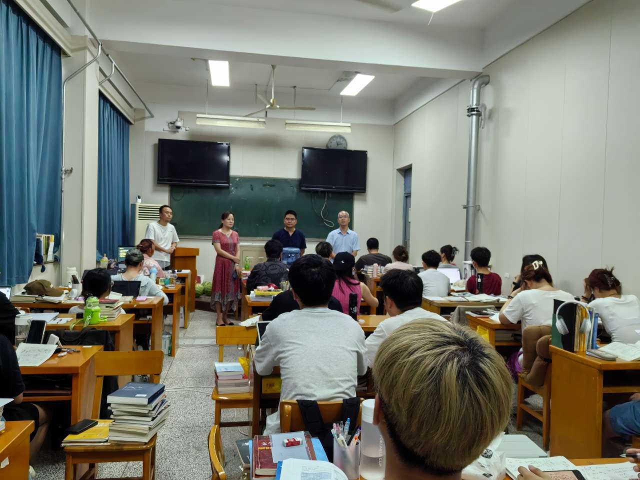 在考研自习室,同学们冒酷暑奋战书海,认真备考,教师无私付出倾心指导。翟云会详细询问了同学们的学习进度,生活状况和心理状态,并为同学们不畏艰难,勇攀高峰的精神给予了高度评价。曹贤姿鼓励同学们说,梅花香自苦寒来,宝剑锋从磨砺出。考研是人生重要的转折点,同学们要坚定信念,明确目标,为实现自己的人生理想而努力拼搏。学院高度重视考研工作,为考研同学提供了良好的学习环境和条件,希望同学们珍惜机会,发挥自身优势,最终实现各自的目标。随后,院领导到每个教研室、实验室看望了工作教师。