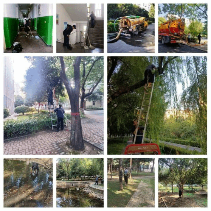 为了给大一新生营造整洁的生活环境,对高新校区及书院校区实施了毕业生宿舍进行深度保洁工作。利用暑期对校园绿化进行了细致的养护工作,修剪树枝、补植新绿清理杂草、清理了化粪池,对镜湖中的杂物和水草进行打捞,进行了除淤消杀注水工作,提升校园环境,同时增设了多处文化景观小品,提升了校园的整体美观度和文化氛围。