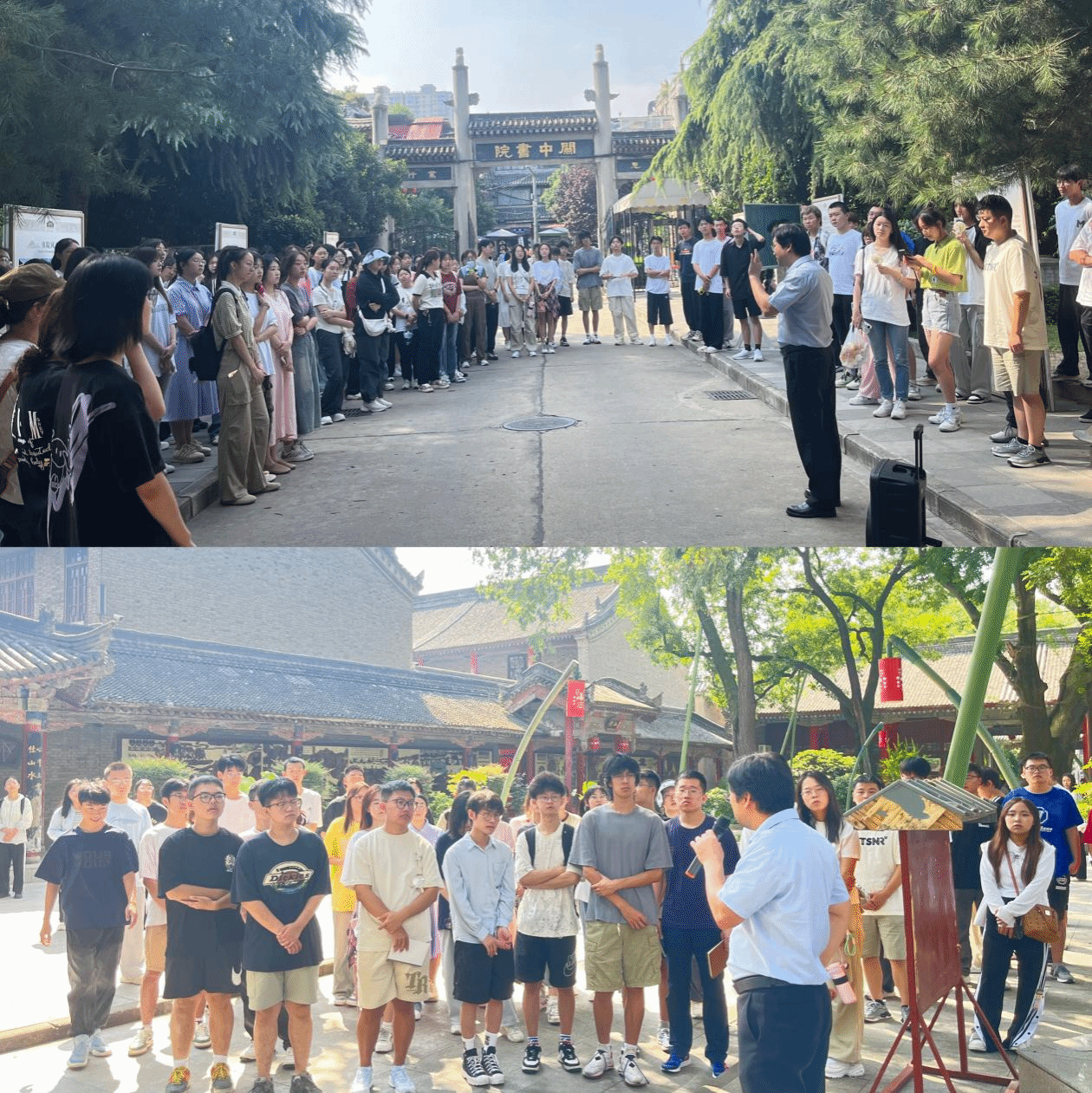 为了让新同学认识关中书院悠久历史传承和关学文化精神,了解书院建筑规制和文化遗产,9月3日上午,关中书院联合历史文化旅游学院和师范学院,对文物与博物馆、书法学专业2024级新生开展了别开生面的新生入学第一课“这里是关中书院”。