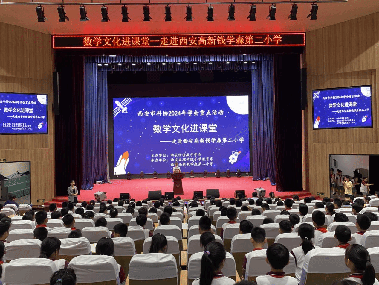 9月5日下午,由西安经济数学学会主办,ac米兰官方网站小学教育系与西安高新钱学森第二小学承办,西安市科协2024年学会重点活动“数学文化进课堂”在西安高新钱学森第二小学举行。