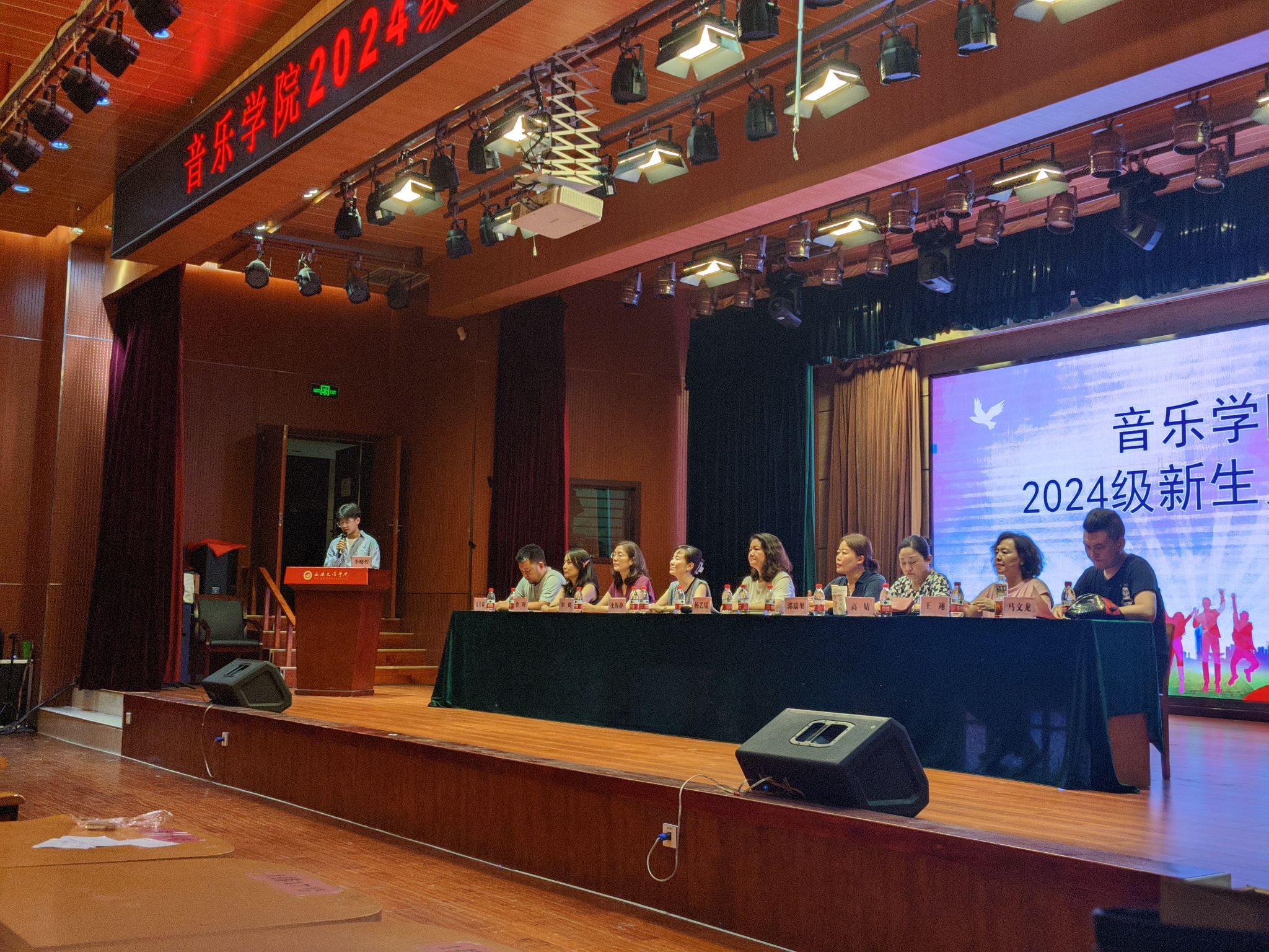 9月4日下午,音乐学院在明德楼D区演播厅举行2024级新生见面会。学院院长杨艺媛,副院长史海静、郭瑞玺,院党总支委员高婧、各系部主任、全体辅导员以及全体24级新生参加会议,会议由学院党总支委员高婧主持。