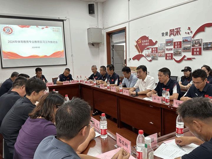 9月11日下午,体育学院在体育大厅会议室召开了2024年体育教育专业教育实习工作推进会。此次会议旨在总结过去,展望未来,进一步推动体育教育专业实习工作的深入开展,提升实习质量与效果。教务处处长蔡军,体育学院班子、20个教育实习基地的负责人和体育学院系部教研室主任、校内指导教师参加会议。会议由体育学院院长查毅主持。