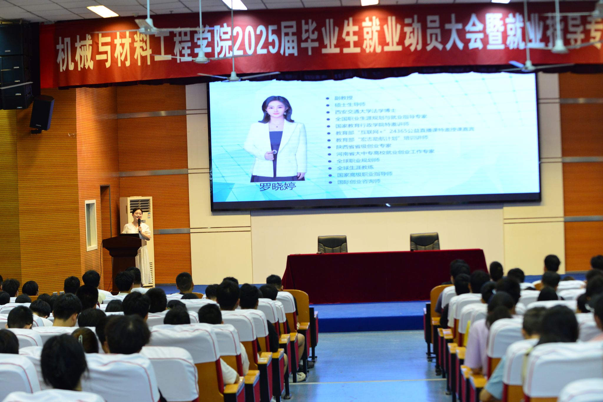 为深入贯彻落实党中央、国务院关于“稳就业”、“保就业”工作决策部署,积极响应ac米兰官网就业工作会议精神和相关要求,进一步引导2025届毕业生明晰就业形势、把握就业机会、积极主动就业。9月13日下午,机械与材料工程学院在明德楼A区报告厅召开2025届毕业生就业动员大会暨就业指导专题讲座。学院党总支副书记杜丽娜、各系主任、辅导员以及2025届毕业生共计300余人参会。会议由副书记杜丽娜主持。