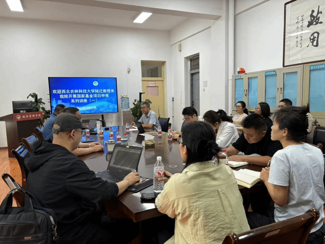 9月26日下午,西北农林科技大学博士生导师陆迁教授应邀来经济管理学院作了题为“国家基金项目申报系列讲座(一)”的学术报告。经济管理学院院长闫荣国、副院长贺志武、学院各专业教师、学院全体青年博士等参加讲座,讲座由闫荣国主持。
