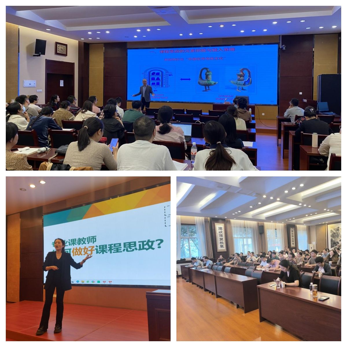 首先举行的是“课程思政”专题讲座,邀请了全国高校教师教学创新大赛课程思政赛道正高组一等奖获得者、西北工业大学博士生导师张磊磊教授,以及陕西省课程思政教学名师、课程思政教学标兵、西北农林科技大学课程思政培训团队负责人李侃侃副教授,就如何做好“课程思政”进行了深入讲解。各学院的90余名骨干教师参加了此次培训。