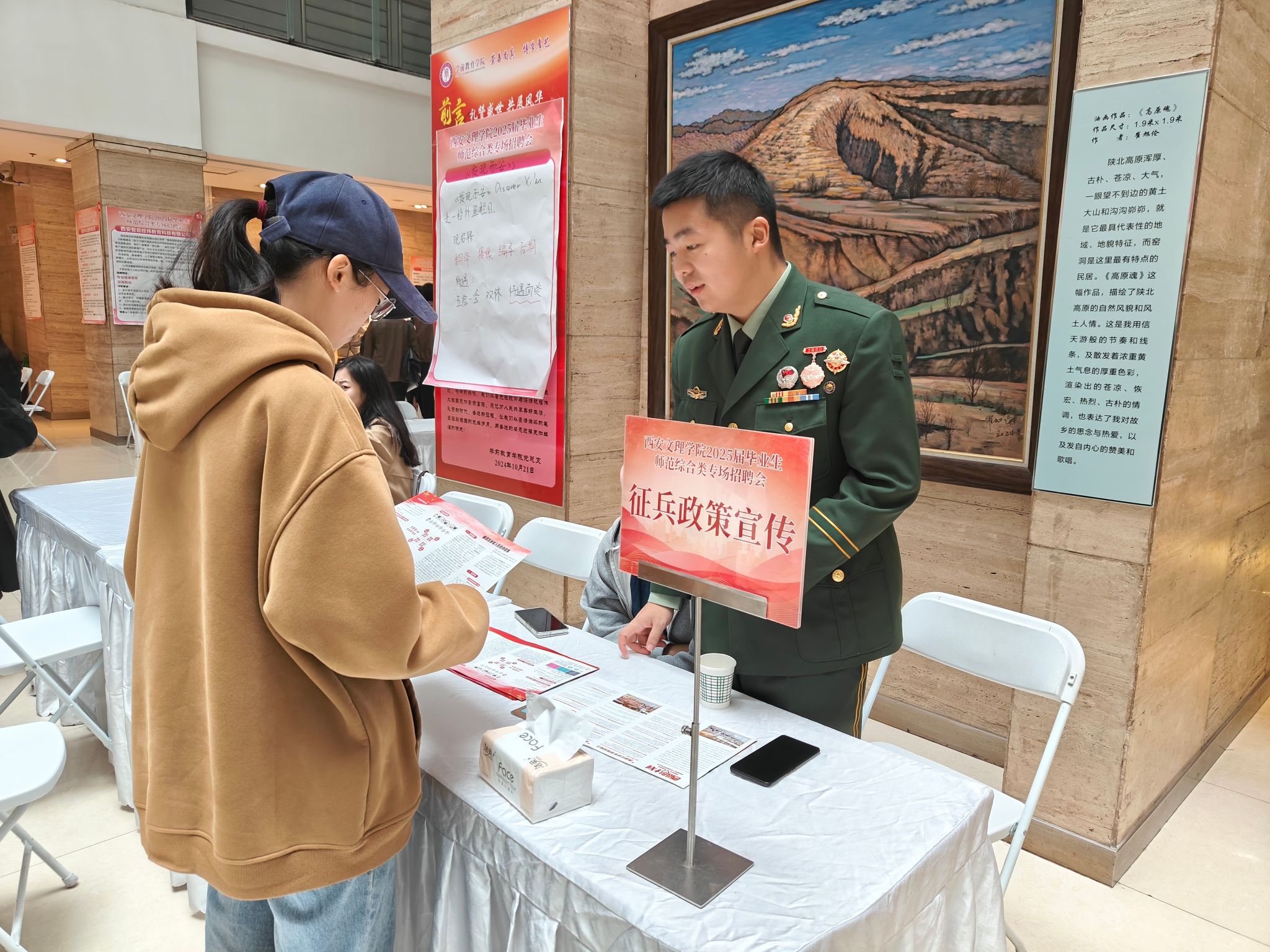 同时,招聘会现场还设置了包括“征兵宣传”、“简历门诊”等在内的多个功能区,为毕业生同学们提供全方位的招聘会服务。在“征兵宣传”专区,ac米兰官网优秀退伍学生手持征兵政策宣传手册,为有意征兵入伍的同学,介绍入伍政策和发展前景,让毕业生同学深入了解不同就业渠道。