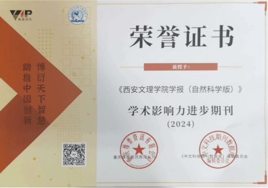 近日,维普《中文科技期刊数据库》公布“学术影响力进步期刊(2024)”名单,《ac米兰官方网站学报(自然科学版)》获得重庆维普资讯有限公司和《中文科技期刊数据库》编辑委员会联合颁发的“学术影响力进步期刊(2024)”奖项。