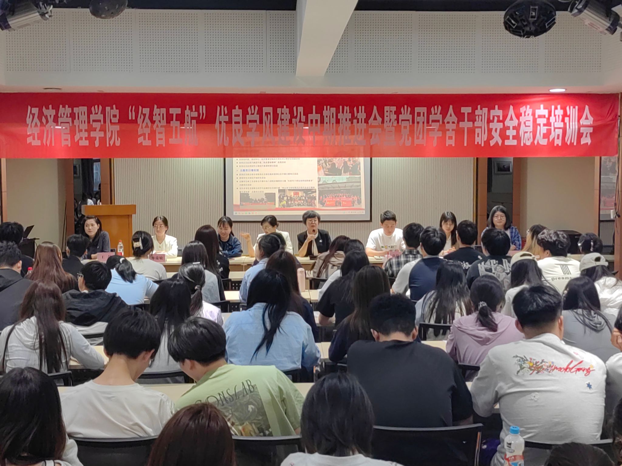 4月29日晚,经济管理学院在大学生活动中心召开“经智五航”优良学风创建中期推进会暨党团学舍安全稳定培训会。党总支副书记朱芳芳、全体辅导员及党团学舍干部参加。